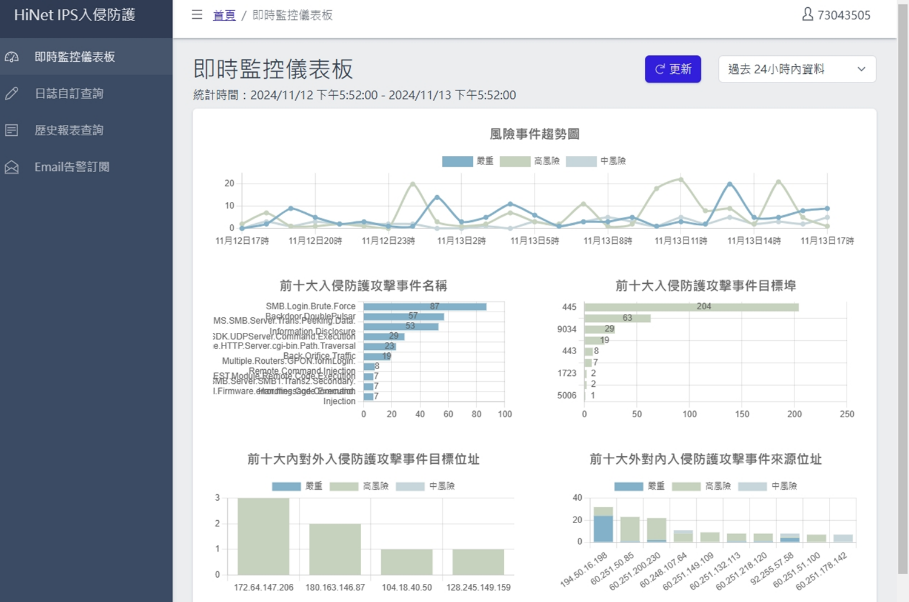 已識別風險:攔截之網路攻擊次數: